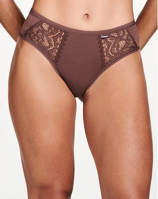 Calcinha com laterais médias, ótima cobertura e alta elasticidade com leves brilhos do tecido exclusivo;