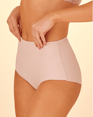 Calcinha cintura alta com ampla cobertura, com frente no tecido duplo com alta elasticidade;