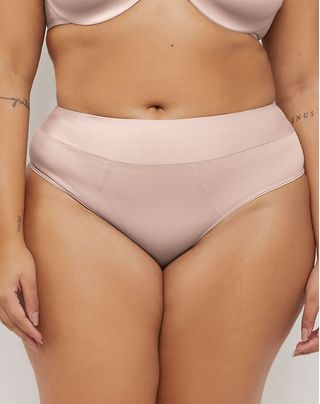 Calcinha em microfibra lisa modelo tanga, cintura alta e cós largo formato pala dupla com mesmo tecido e elástico interno;