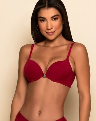 Efeito push up que aproxima os seios ,feito em microfibra de poliamida lisa e com bojo em espuma macia com enchimentos que levanta e valoriza o seio;