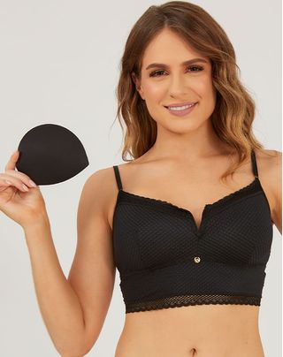 Sutiã com decote em V, com aro e detalhes de renda no contorno