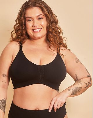 Não possui bojos e nem aros e possui um decote redondo em forma de regata;